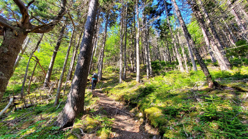 A little after 2pm we reach Big Bauld Rock. This is probably my favorite section of the trail. It comes out onto a rock cropping that feels like another world. The trail crosses the barren land in complete contrast with the twisted spruce and pine forests we just came from. The trail only follows this section for a few minutes, but it is a wonderful time while we are here.